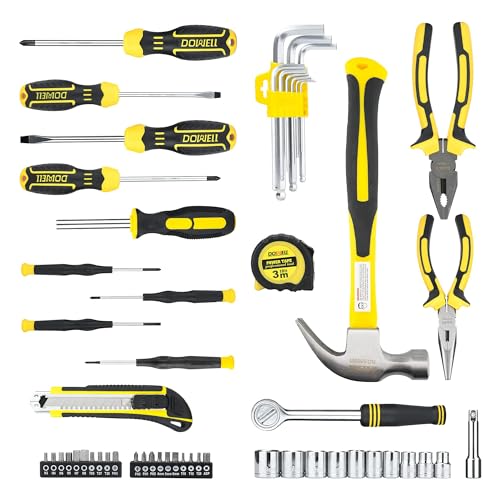 Deze 60-delige set van huiseigenaren bevat alle gereedschappen die nodig zijn om eenvoudige doe-het-zelfprojecten in huis te voltooien en autoreparatie.