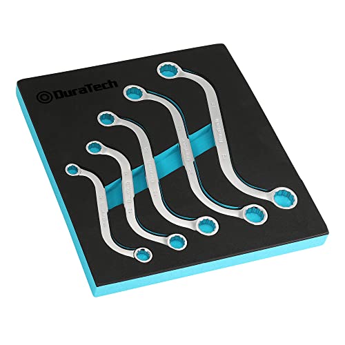 DURATECH 5-delig Dubbele Ringsleutelset10 mm tot 19 mm, S-Type Obstructiesleutel Dubbele Steeksleutelset, Metrisch,12 punts, met EVA-schuim gereedschapsopbergmiddel