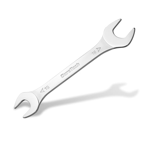DURATECH Dubbele steeksleutel, metrisch formaat 15 x 16 mm, superdunne open sleutel, platte sleutel voor smalle ruimte, koolstofstaal, spiegelverchroomd