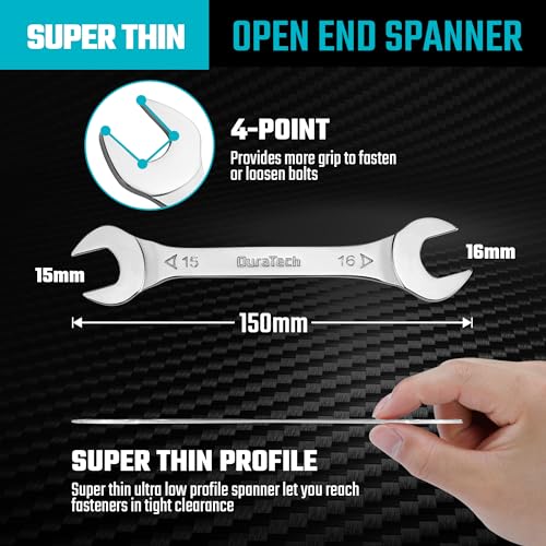 Hoge kwaliteit: een DURATECH top rate 15 x 16 mm superdunne sleutel. Dun, maar sterk. Gemaakt van top rate koolstofstaal met spiegelpolijstafwerking