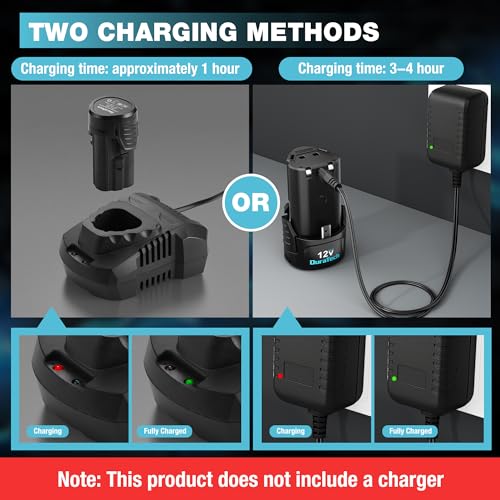 Snel opladen en langzaam opladen naar keuze: uitgerust voor je behoeften, maakt snel opladen met basislader (ca. 1 uur) of langzaam opladen door directe aansluiting (3-4 uur), om ervoor te zorgen dat je altijd energie voor je projecten hebt