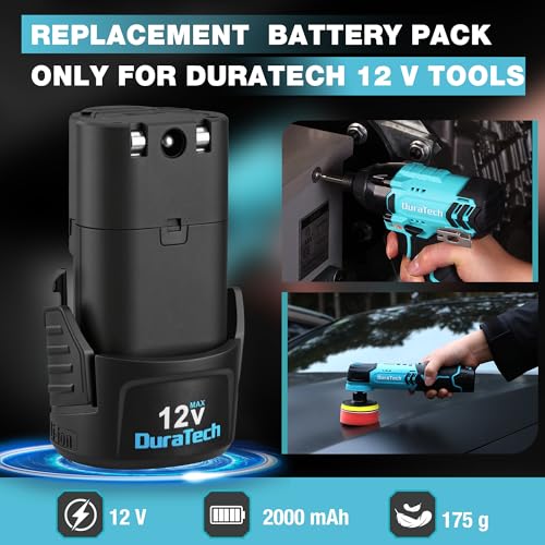 Brede compatibiliteit met draadloos gereedschap: de oplaadbare accu van 12 V en 2,0 Ah is volledig compatibel met de DURATECH accugereedschapsserie, inclusief boormachines, slagmoersleutels, haakse slijpers, alternatieve zagen, grasmaaiers en elektrische heggenscharen en biedt betrouwbare energie voor elke taak