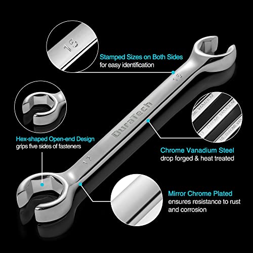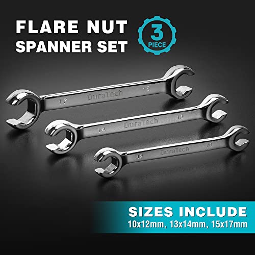 DURATECH Flare Moer Spanner Set, Dubbele End Open Ring Sleutel Set, Remleiding Sleutel Set, Metrisch, 3-Delig, 10x12mm, 13x14mm, 15x17mm, met Opbergzakje