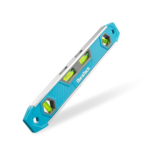 DURATECH Magnetische torpedo-waterpas, 300 mm, met 4 ampullen met hoge zichtbaarheid, hoek forty five/zero, 5 lijnen/ninety graden, behuizing van aluminiumlegering, krachtige magneetvoet