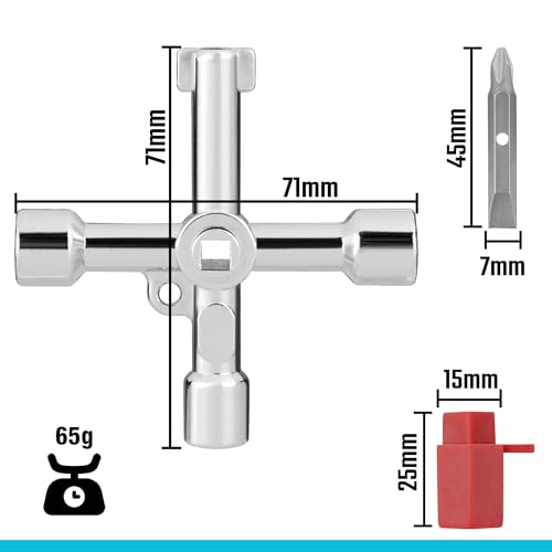 Specificaties: DURATECH Meterbox Sleutel Gassleutel met Bit, 1-Pack, 4-weg multifunctionele nutssleutel voor elektrische liftkast kast watergasmeter opening