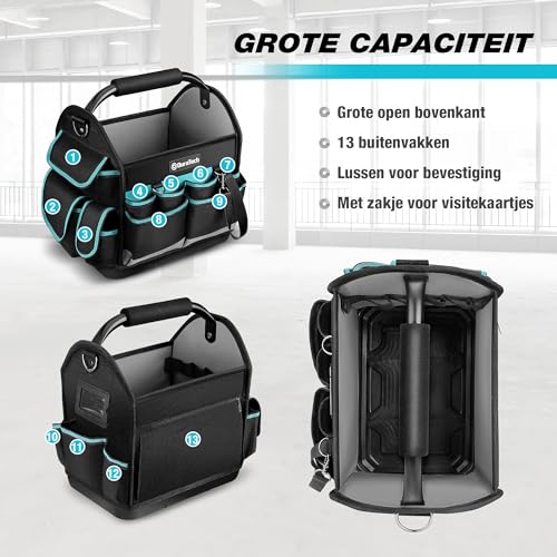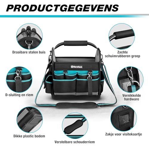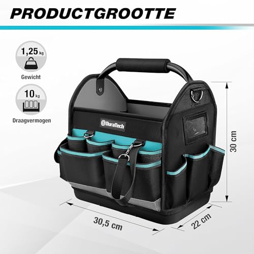 SPECIFICATIES – De gereedschapstas heeft een afmeting van 30,5 x 22 x 30 cm, een maximale belasting van 10 kg en een grote opening om aan uw behoeften te voldoen bij het vervoeren van groot gereedschap. Alle hardware is zwart vernikkeld, met uitstekende roestwerende en slijtvaste prestaties.