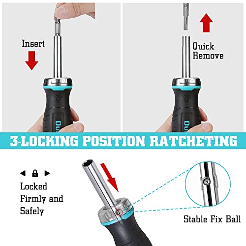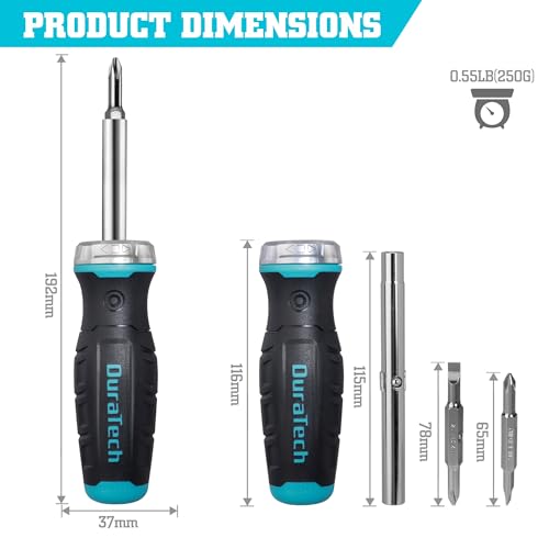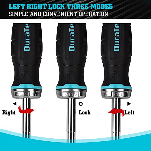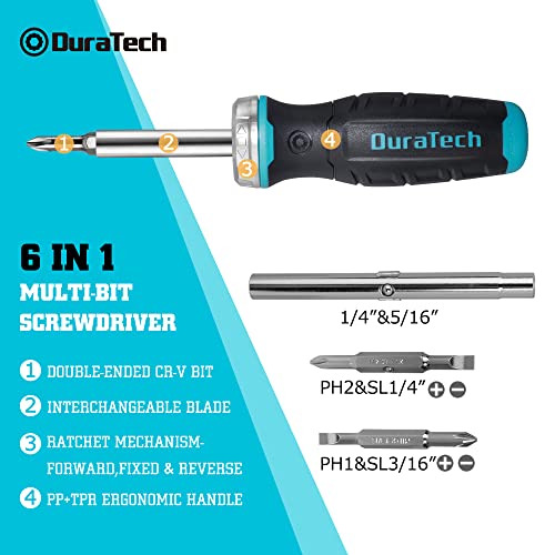 DURATECH Ratelschroevendraaier 6-in-1, bitschroevendraaier Schroevendraaier met ratelfunctie om snel te schroeven en los te draaien zonder rond te reiken, 1/4″& 5/16″zeskant, 2 sleuf-/kruiskopbits
