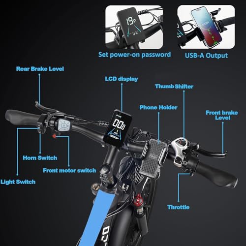 [All-terrain banden en volledige vering] De 26 inch dikke banden bieden uitstekende grip en controle, waardoor het een e-bike voor alle terreinen is die vol vertrouwen sneeuw, zand, modder of andere uitdagende oppervlakken kan doorkruisen. Deze volledig geveerde e-bike is niet alleen uitgerust met vergrendelbare vorken, maar ook een middenschokdemper van racekwaliteit, die schokken aanzienlijk vermindert en de rijstabiliteit en het consolation verhoogt. Deze full-suspension e-bike is niet alleen uitgerust met een afsluitbare voorvork, maar ook met een race-grade middenschokdemper, die stoten tijdens het rijden aanzienlijk vermindert en de stabiliteit en het consolation verbetert.