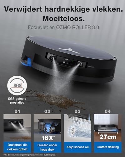 De Robotstofzuiger ECOVACS X12 OmniCyclone zuigt met een krachtige 22.000 Pa en maakt hardnekkige vlekken schoon dankzij FocusJet vlekvoorbehandeling. Hij reinigt vloeren grondig en efficiënt, met extra dweilkracht door de OZMO Roller 3.0. Deze robotstofzuiger zorgt voor minder werk en een schoner huis. Hij verwijdert vlekken zoals koffie, ketchup en sap in één keer. Dankzij PowerBoost laadtechniek werkt hij tot 5.000 m² zonder pauze. De Anti-Tangle borstel voorkomt vastlopen door haren en stof. Obstakels en drempels tot 4 cm worden soepel genomen, ook dankzij het 4-wiel aandrijfsysteem. Het zelfreinigende Omni-station vermindert geur en onderhoud en kan tot 48 dagen stof automatisch legen. Specificaties: – Zuigkracht: 22.000 Pa – Dweilbreedte: 27 cm (OZMO Roller 3.0) – Max. dweilsnelheid: 220 rpm – Stofbak capaciteit: 1,6 liter – Drempelklimvermogen: 2,4 cm (single), 4 cm (continu) – Schoonmaakoppervlak: tot 5.000 m² per sessie – Automatisch legen: tot 48 dagen Gebruik de ECOVACS X12 voor dagelijks stofzuigen, dweilen en het verwijderen van vlekken in woonkamers, keukens en kantoren. Ideaal voor drukke huizen met huisdieren en kinderen die snel een schone vloer willen.
