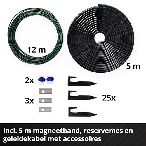 Accessoires – De FREELEXO CAM PLUS 600 wordt geleverd inclusief: Laadstation, 1x 4.0 Ah Accu, 3x reservemessen, geleidekabel van 12m, 25x bevestigingshaken, magneetband van 5 m, 2x verbindingsklemmen.