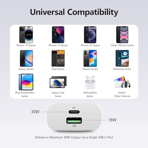 Universele Compatibiliteit: De USB-C poort en USB-A poort snelle oplader is geschikt voor de iPhone 15/15 Professional/15 Professional Max/14/14 Professional/14 Professional Max/14 Plus/13/13 Professional/13 Professional Max/13 Mini/12/12 Professional/12 Professional Max/12 Mini/11/11 Professional/11 Professional Max/XS/XS Max/XR/X/8/8 Plus/7/7 Plus/6/6S/SE 2020, Galaxy S23/S22/S21/S20/S10/S9/S8/S7/S6/A12/A13/A2/A32/A52/A53/A71/Observe 20/10, LG, Motorola, Google Pixel, Kindle Hearth en andere digitale apparaten.