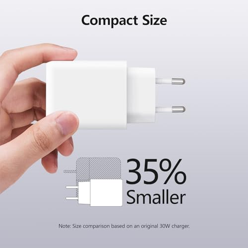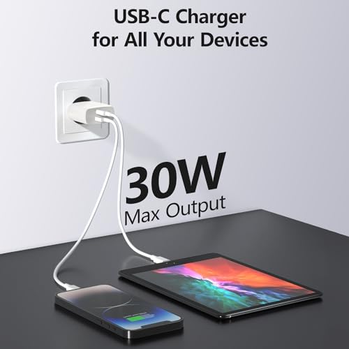 envircell USB C-oplader, 30W GaN 2-poorts Charger, PD Snellader, Type C-opladeradapter voor iPhone 15/14/13/12/11/Pro Max/XS/XR/8/7, Pad, Telefoon, Tablet