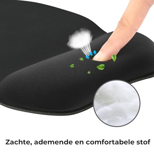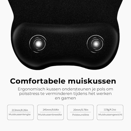 Specificaties: EooCoo Gaming Ergonomische Muismat met Polssteun van Traagschuim, Ergonomic Mouse Pad, Muismatten voor Computer en Kantoor, 4 mm Mouse Mat met Antislip Siliconen Basis, PC accessoires, Zwart