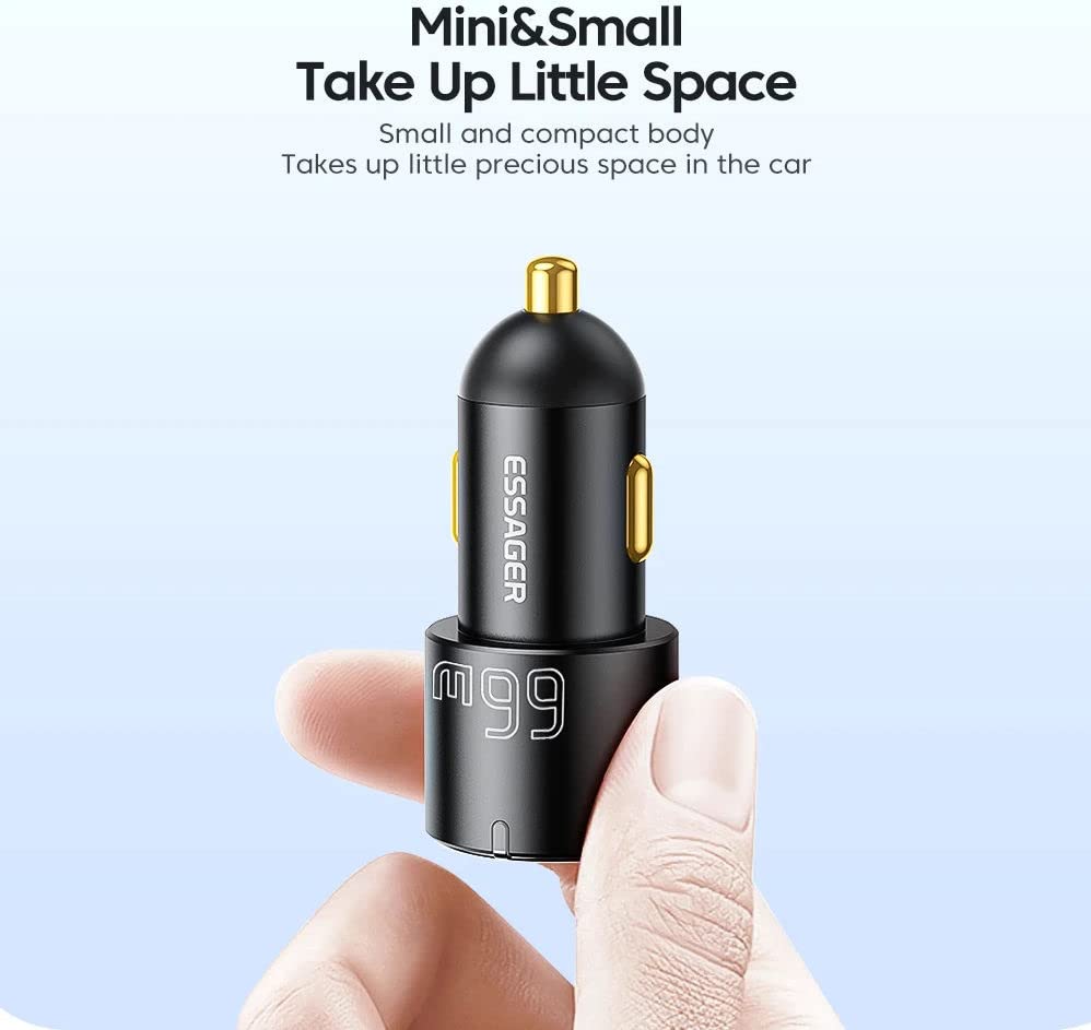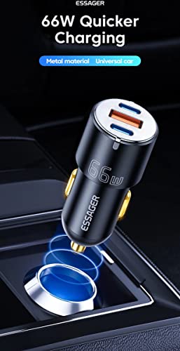 Specificaties: Essager City USB/USB-C Autolader Fast Charge 66W Snellader Zwart