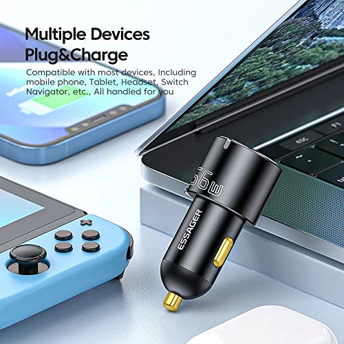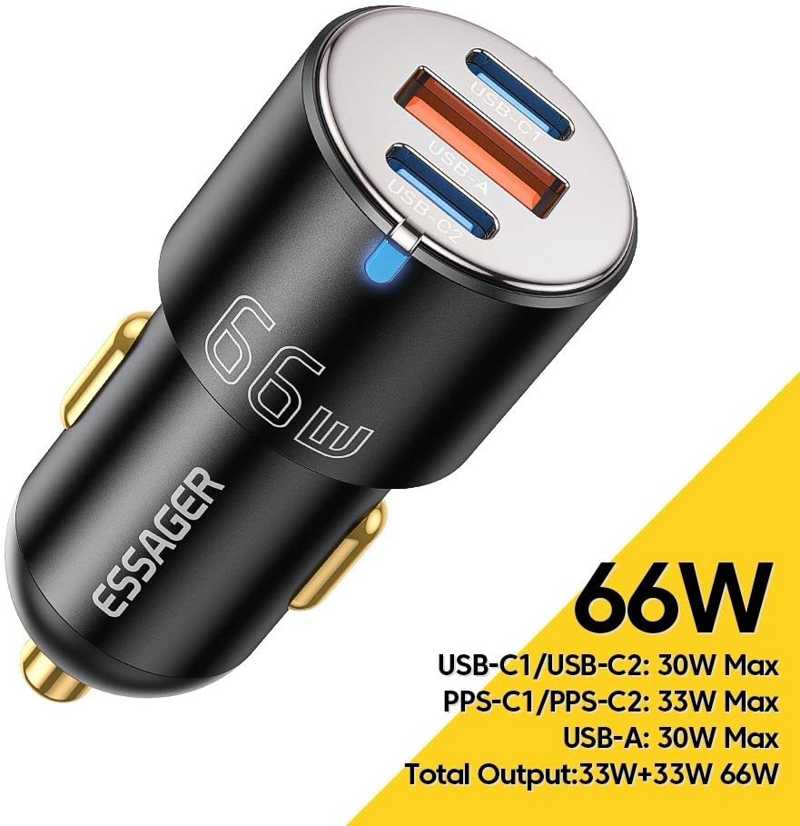 Essager City USB/USB-C Autolader Fast Charge 66W Snellader Zwart