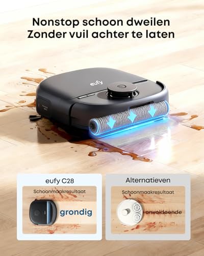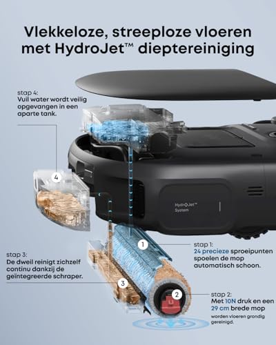 De Robotstofzuiger C28 met HydroJet zelfreinigende dweil zorgt voor een grondige en zorgeloze schoonmaak dankzij 15.000 Pa krachtige zuigkracht en slimme AI-obstakelherkenning. Met het 5-in-1 station automatiseer je stof legen, dweil reinigen, water bijvullen, drogen en afvalwater afvoeren. Je huis is sneller schoon en je hebt minder omkijken naar onderhoud. De zelfreinigende dweil voorkomt vieze geurtjes en zorgt dat je onafgebroken kunt dweilen. Door de sterke zuigkracht worden haren, stof en vuil van harde vloeren en tapijt effectief verwijderd. Obstakels worden herkend en vermeden, zodat de robot ook onder meubels en in donkere hoeken werkt. Specificaties: – Zuigkracht: 15.000 Pa – Zelfreinigende HydroJet dweil – AI-obstakelherkenning – 5-in-1 station voor automatisch legen, wassen en drogen – DuoSpiral borstel voorkomt haarophoping – Geschikt voor harde vloeren en tapijt Gebruik de C28 voor dagelijks stofzuigen en dweilen van woonkamers, keukens en slaapkamers. Ideaal voor huizen met huisdieren en kinderen, waar snel en efficiënt schoonmaken belangrijk is.