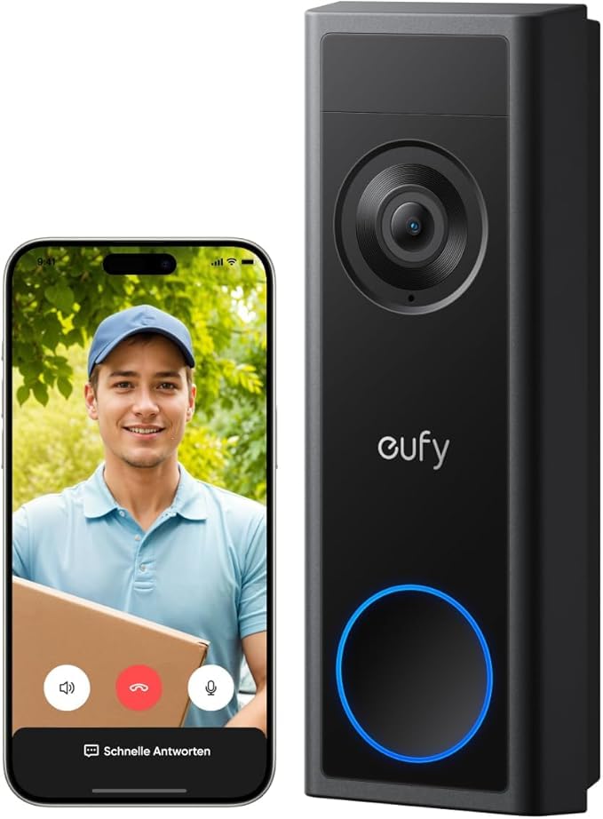eufy Video Doorbell C31, 2K FHD, werkt op batterijen of vaste bedrading, batterij met quick release, live videogesprek, 24/7 opname, mens- en bewegingsdetectie, compatibel met HomeBase S380