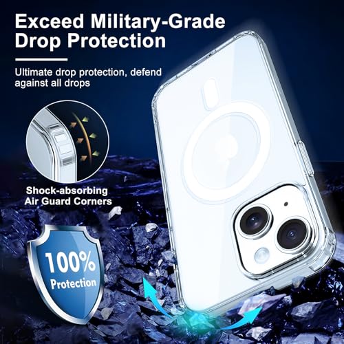 Specificaties: Exsight Magnetisch Helder Hoesje voor iPhone 15, Compatibel met MagSafe Draadloos Opladen, Antislip & Valbeveiliging Bumper Case, Schokbestendig Telefoon Hoesje Cover, Beschermhoesje (Transparant)