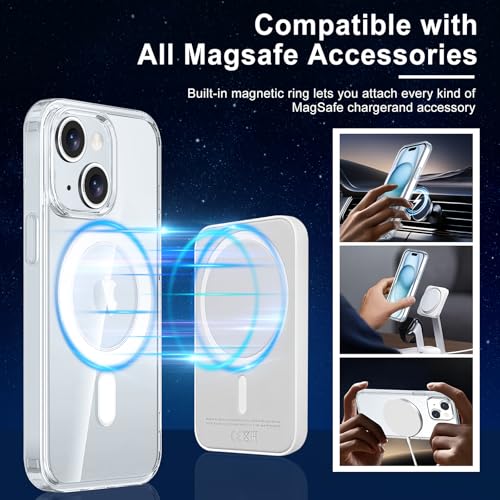 Exsight Magnetisch Helder Hoesje voor iPhone 15, Compatibel met MagSafe Draadloos Opladen, Antislip & Valbeveiliging Bumper Case, Schokbestendig Telefoon Hoesje Cover, Beschermhoesje (Transparant)