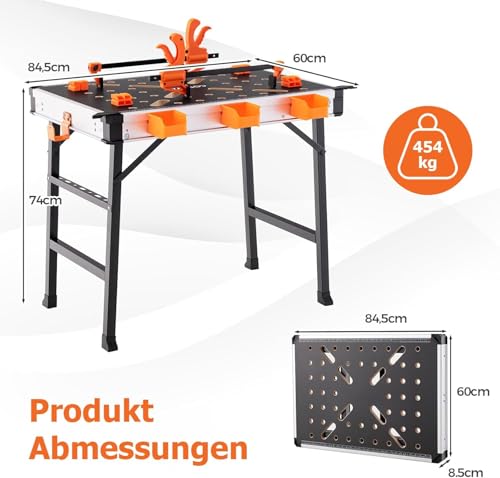 Specificaties: FANTASK Werktafel inklapbaar, werktafel tot 454 kg belastbaar, gereedschapstafel voor garage, werkplaats, werkbank met 2 snelklemmen, 4 klemhaken, 3 gereedschapskoffers en metalen frame