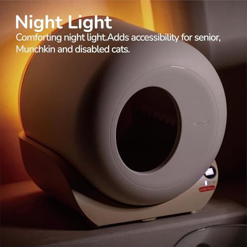 【LED-nachtlampje】Deze automatische kattenbak is uitgerust met een LED-nachtlampje waarvan de helderheid thru een knop kan worden aangepast. Zo voelen okayangstige huisdieren zich’s nachts op hun gemak en het licht zorgt er bovendien voor dat je aangenaam licht hebt.’