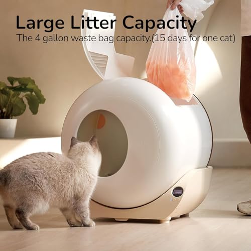 Grote capaciteit van 100 l en 8 liter afvalopvangbak: deze elektrische automatische kattenbak beschikt over een ruime binnenruimte. Hierdoor voelt uw kat zich tijdens het gebruik niet beperkt en kan genieten van een schone, hygiënische omgeving. Bovendien werkt ze geruisloos en stoort noch u, noch uw huisdier. Daarnaast leveren wij 40 afvalzakken. Wanneer deze zijn opgebruikt, kunt u universele afvalzakken bijkopen (aanbevolen maat: 50 x 60 cm, capaciteit: 4 L).