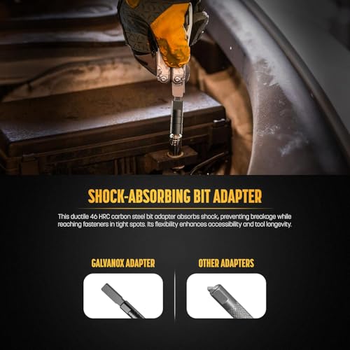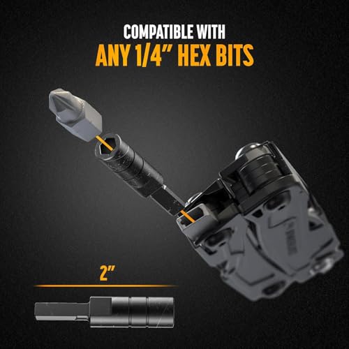 Adapter inbegrepen: Set bevat een Flat-bit naar 1/four” Hex adapter met magnetische bitretentie, compatibel met alle industriestandaard hex bits. Adapterlengte: 2 inch