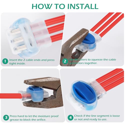 3de Eenvoudige installatie zonder gereedschap: de installatie van de elektrische buitenconnectoren is snel en eenvoudig. Steek de draden in en klik de connector vast. Klemmen wordt aanbevolen.