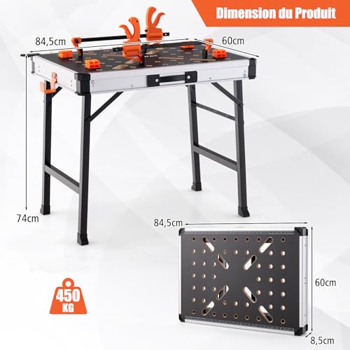 Specificaties: GOPLUS Inklapbare werkbank, in hoogte verstelbare tafel met 454 kg capaciteit, 2 snelklemmen, 4 spanhaken en 3 gereedschapskisten, multifunctioneel