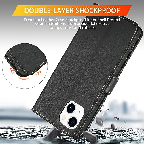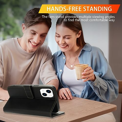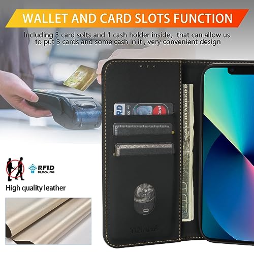 iPhone 13 / iPhone 14 leren klaphoes met kaartsleuven, TPU schokbestendig, opvouwbare portemonnee cover