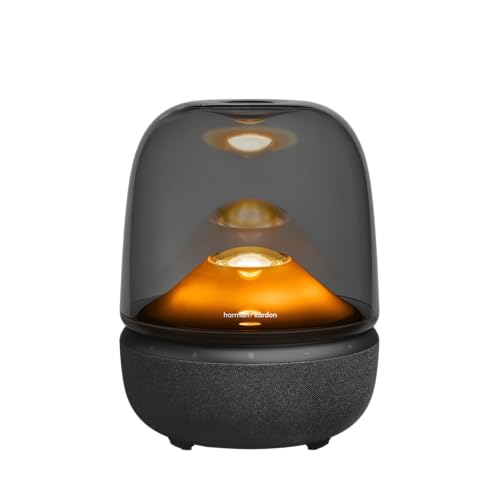 Harman Kardon Aura Studio 5 Bluetooth Home Speaker, constante geluidsveldtechnologie met 3-weg luidsprekerontwerp, multi-speakeraansluiting van Auracast, kleurrijke lichtshows, 360° Ambient Glow