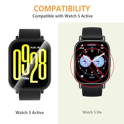 Stap 1: ⌚ 【Speciaal design compatibel met Xiaomi Redmi Watch 5 Active】 [5 stuks] beschermhoes compatibel met Xiaomi Redmi Watch 5 Active, deze hoogwaardige PC-hoes met geïntegreerde geharde displaybescherming dekt het scherm van het horloge en de gebogen randen voor 360 graden bescherming voor je horloge.