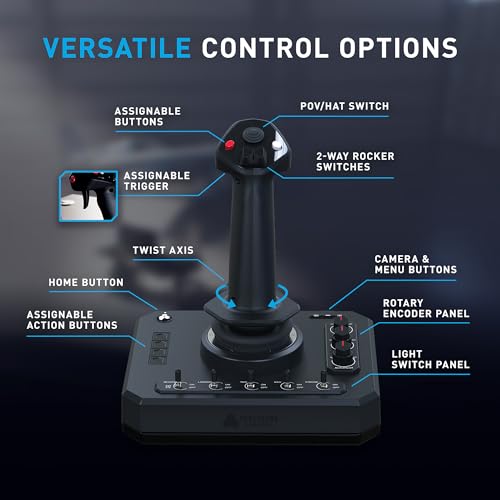 AMBIDEXTROUS DESIGN – Ergonomische grip voor hyperlinks- en rechtshandige piloten met intuïtieve toegang tot alle controls – ideaal voor lange vluchten, aerobatics of casual simming, een veelzijdige flight simulator joystick voor elk setup.
