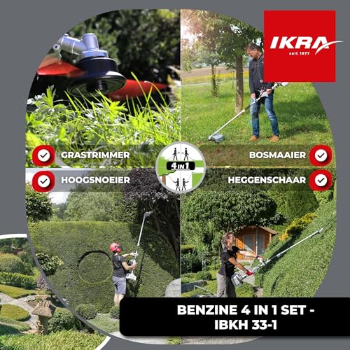 IKRA Benzine multifunctioneel tuingereedschap Multitool IBKH 33-1, 4in1: bosmaaier, gazontrimmer, heggenschaar, hoogsnoeier