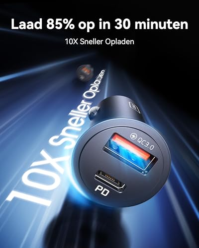 Snelheid die past bij jouw levensstijl: Laad je iPhone of Samsung op tot 85% in slechts 30 minuten – ideaal voor dagelijkse ritjes en boodschappen. Met laadsnelheden die 10 keer sneller zijn dan standaardladers hoef je je nooit meer zorgen te maken over een lege batterij.