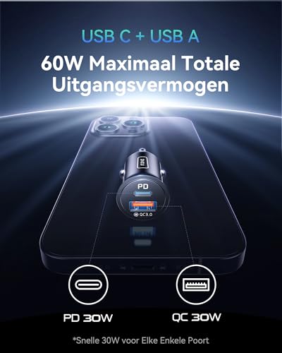 ![INIU 60W Autolader [USB C + USB A], PD & QC 3.0 Snel Opladen Sigarettenaansteker, Auto Oplader Car Cigarette Charger for iPhone 17 16 15 14 13 12 Pro Max Samsung Galaxy S24 S23 iPad MacBook - Afbeelding 5](https://m.media-amazon.com/images/I/31botHu8+0L.jpg)