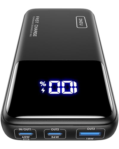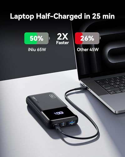 INIU Power Bank, 20000mAh 65W Powerbank Klein Maar Sterk, PD 3.0 QC 4.0 Draagbare Oplader met LED-display Zaklamp Compatibel met MacBook Pro Samsung S23 iPhone 16 15 14 Pro Max Plus iPad Steam Deck