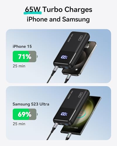 [Laad er 3 tegelijk op] Met 3 oplaadpoorten, waaronder een bliksemsnelle PD 65W USB-C uitgang, een PD 36W USB-C snellaadpoort en een betrouwbare USB-A poort, is deze powerbank je alles-in-één oplaadoplossing. Hij werkt naadloos met verschillende kabeltypen en zorgt ervoor dat al je apparaten snel worden opgeladen.
