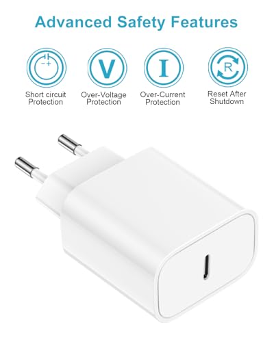 Veilig & Betrouwbaar iPhone USB C Energy Adapter: Deze iPhone lader Constructed-in meervoudige beveiligingssysteem kan je apparaat te beschermen tegen overladen, overstroom, overspanning en zorgt voor veiligheid. iphone energy adapter ondersteunt ook alle gangbare spanningen van AC 100 – 240V, die automatisch previous de stroom die nodig is door het apparaat. Geschikt voor internationale reizen.