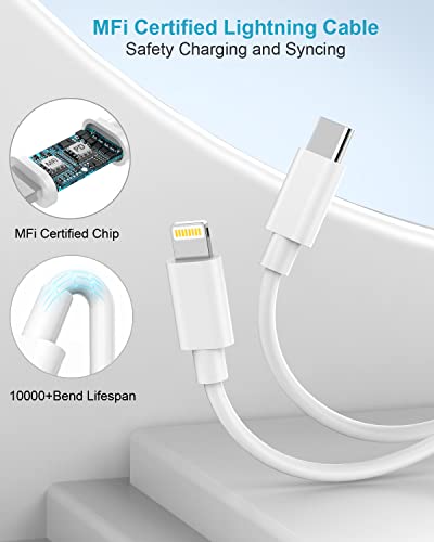 Specificaties: iPhone snellader met oplaadkabel 2M, AINPOW 20W iPhone oplader USB C oplader met iPhone snellaadkabel, USB C voedingsadapter voor Apple iPhone 14 13 12 Pro Max/11/XS/XR/iPad