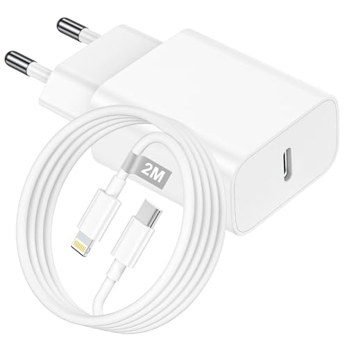 iPhone snellader met snellaadkabel, 2 m, Apple MFi gecertificeerd, 20 W USB C oplader, iPhone voeding, USB C laadadapter, snellader, adater, USB C voor iPhone 14, 13, 12, 11 Pro Max/XS/XR/SE/8/iPad