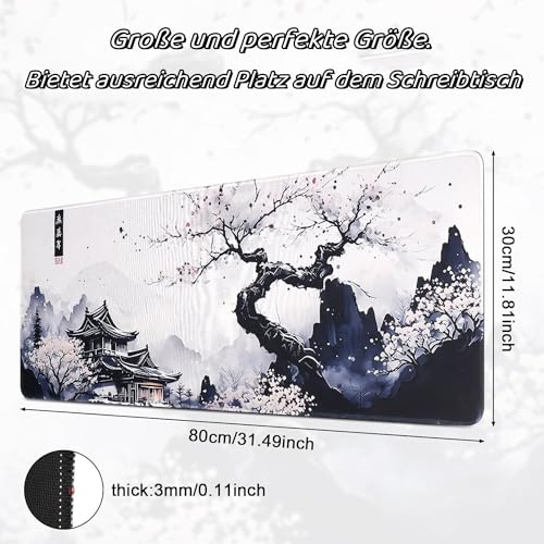 Specificaties: Japanse witte muismat, grote kersenbloesem, bureaumat, anime-gaming-toetsenbordmat, antislip rubberen basis, grote uitgebreide bureaubescherming voor thuiskantoor
