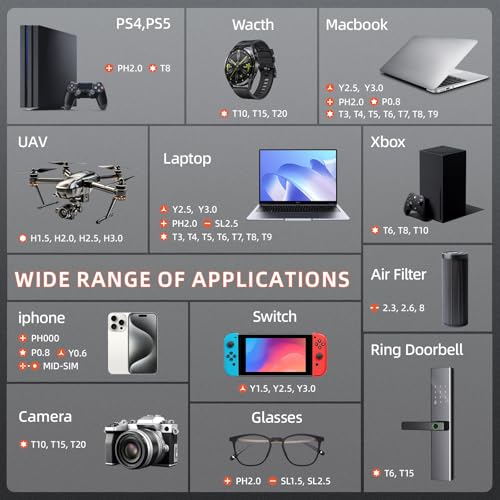 Breed scala aan toepassingen: geschikt voor iPhone7/8/X/XR/eleven/12/thirteen, Samsung/Huawei/Xiaomi en andere mobiele telefoons; iPad/Mini/Air/Skilled en Huawei/Honour en andere pill-laptop; Macbook/Air/Skilled; Kindle Hearth; Ring Visible Doorphone/Visible Doorphone 2/Skilled/Elite; vliegtuigmodel, drones, brillen, horloges en enzovoort. Elite; modelbouw, drones, brillen, horloges enz.