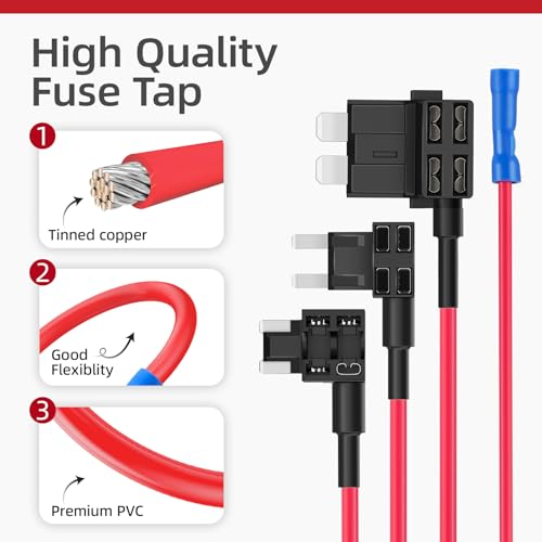 [Breed toepassingsgebied] Deze zekeringtap is geschikt voor car’s, vrachtwagens, terreinwagens, ATV’s, UTV’s, campers, motoren, boten, sneeuwscooters, enz. Hij is all rightgeschikt voor de hulpapparaten van de car, zoals tachograaf, zekeringkast, autoalarmsysteem, GPS of andere elektronische apparaten die rechtstreeks op de zekeringkast moeten worden aangesloten.