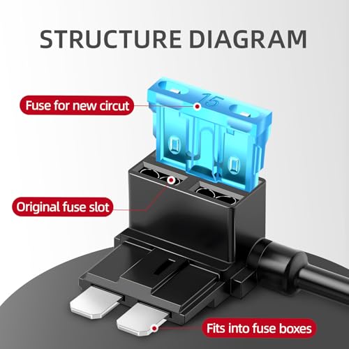 [EASY TO USE] Deze zekeringadapter van de stroomdief earlier in bezette of onbezette onder spanning staande sleuven in de zekeringkast. Installeer eenvoudig additional zekeringcircuits zonder te splitsen of te knippen. Gebruik een zekeringbankschroef om blote draden aan te sluiten op het uiteinde van de blauwe flexibele aansluiting.