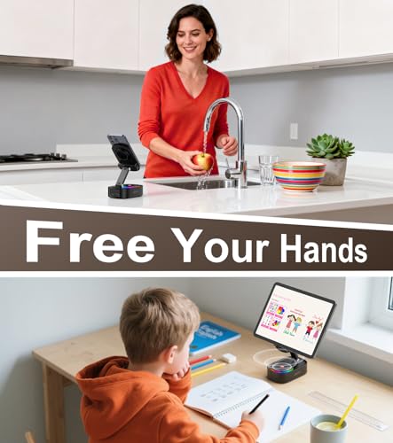 Stabiel en antislip: het heeft een ontwerp met dubbele assen, met een 270 graden draaibare basis en een 180 graden draaibare verticale as, waarmee je video’s in de meest comfortabele positie kunt bekijken. Hij is uitgerust met twee onafhankelijke haken en een antislip siliconen strip om te voorkomen dat je telefoon valt.