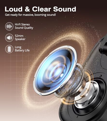 Draadloze bluetooth-luidspreker: de Bluetooth 5.3-technologie zorgt voor een stabiele verbinding, met een snelle verbindingstijd van 1-3 seconden en een maximaal bereik van 10 meter. De 52 mm luidspreker biedt een optimale geluidskwaliteit met uitstekende prestaties bij gemiddelde tonen en goede lage tonen en hoge tonen. In deze modus wordt aanbevolen om naar muziek te luisteren en video’s te bekijken. Je kunt niet met je mobiele telefoon in de Bluetooth-modus bellen.