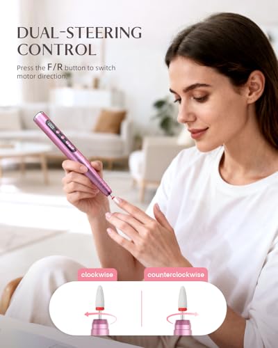 JOREST Wireless Electric Nail Drill, een hoogwaardig gereedschap dat speciaal is ontwikkeld voor moderne nageltechnici en doe-het-zelvers. Uitgerust met 6 snelheden vooruit en achteruit instelbaar, geluidsarm, eenvoudige opbouw en lange batterijduur. De antislip siliconen hoes houdt het apparaat veilig op zijn plaats om wegglijden te voorkomen.