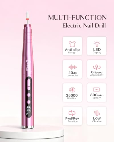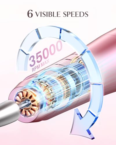 Specificaties: JOREST Nagelfrees, draagbare elektrische nagelvijl, 13-in-1, professionele elektrische pedicure voeten, 35.000 omw/min, 6 instelbare snelheden, manicureset voor meisjes, passie, gelwederopbouwset