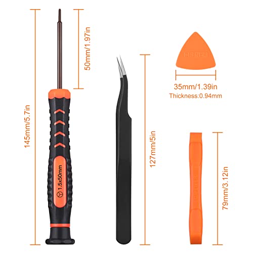 [Schroevendraaier voor Nintendo Switch] de 6-delige schroevendraaierset bevat 3 schroevendraaiers, de Triwing-schroevendraaier Y00 (Y1.five), Y1 (Y3.zero) en Philips PH00 (+2.zero), met een dubbelzijdige spudger, een driehoekige spudger en pincet. Ze worden allemaal in een tas bewaard voor eenvoudig shipping.